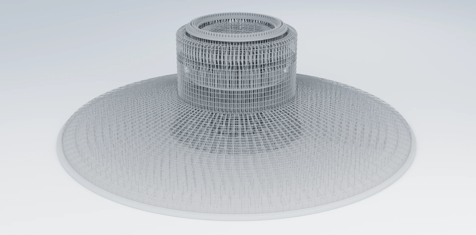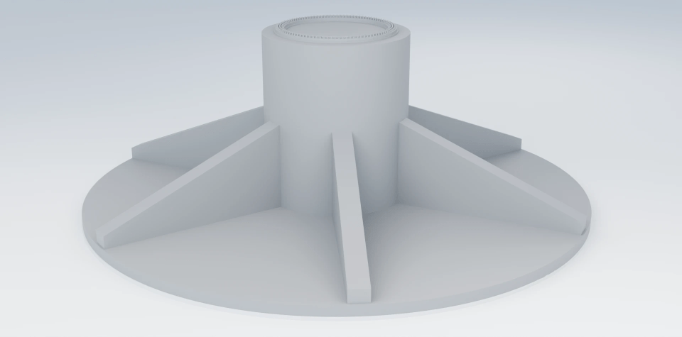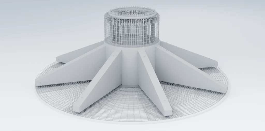 An optimized evolution of the standard type, featuring eight radial walls for improved load dispersion. Engineered to minimize concrete usage and reduce excavation volume. Provides enhanced stiffness and fatigue performance under dynamic turbine loads.