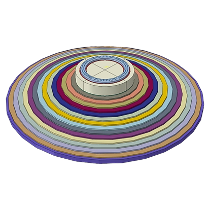 A conventional circular foundation designed for uniform load transfer from the tower base to the subsoil. Its single-stage casting ensures simplicity and speed in construction. Preferred for locations with moderate soil bearing capacity and easy access to construction equipment.