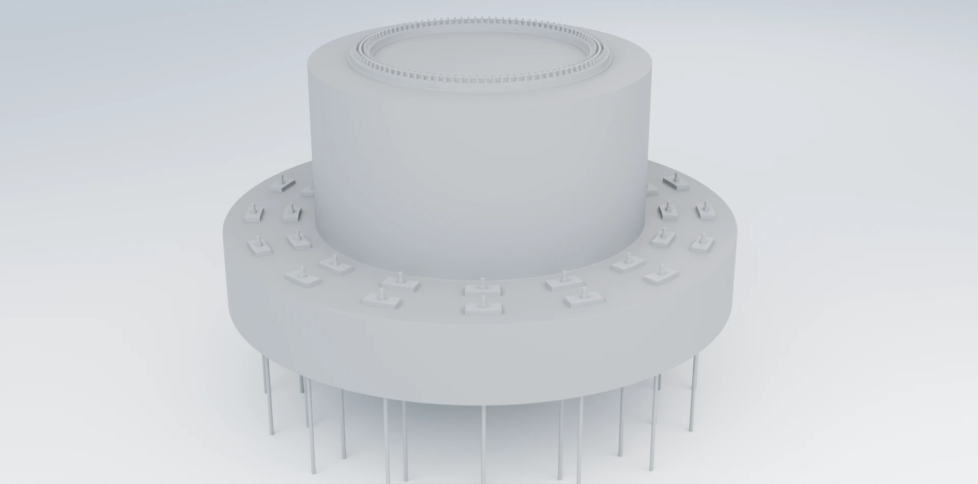 A versatile foundation system combining reinforced concrete with steel support elements, suitable for both onshore and offshore applications. Integrates the benefits of gravity foundations with anchor or pile systems to ensure stability under complex load conditions. Designed to adapt efficiently to varying soil profiles and turbine sizes, ensuring long-term reliability and durability.
